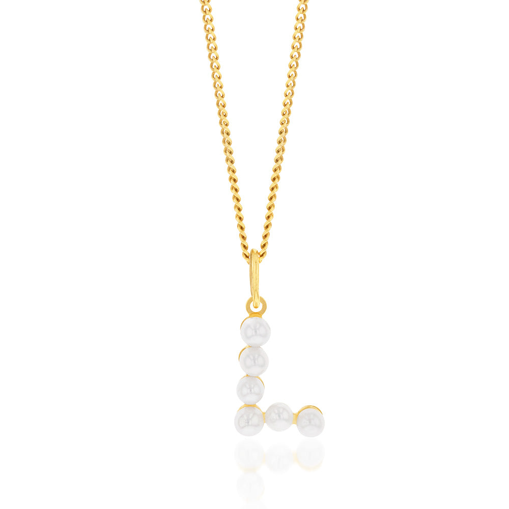 9ct Yellow Gold Fresh Water Pearl Mini Initial "L" Pendant