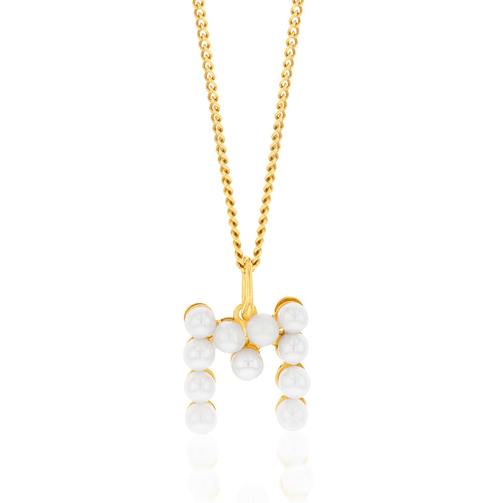 9ct Yellow Gold Fresh Water Pearl Mini Initial "M" Pendant