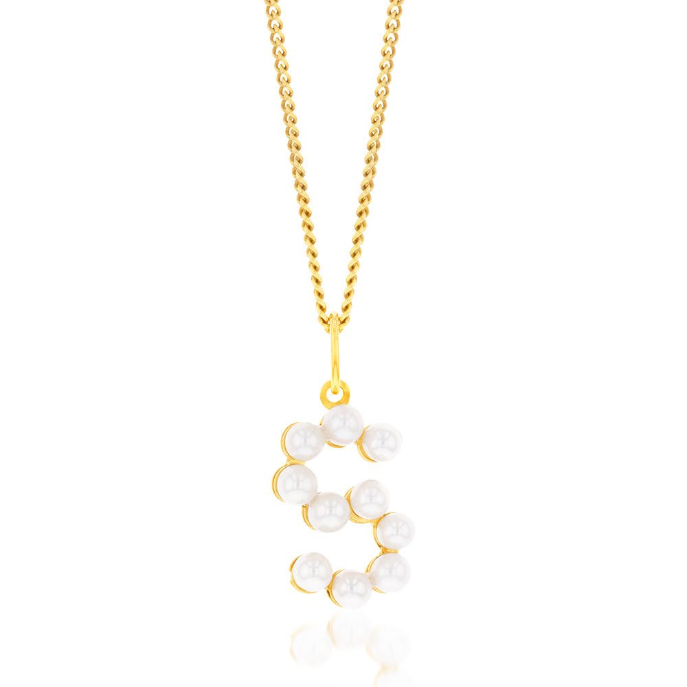 9ct Yellow Gold Fresh Water Pearl Mini Initial "S" Pendant