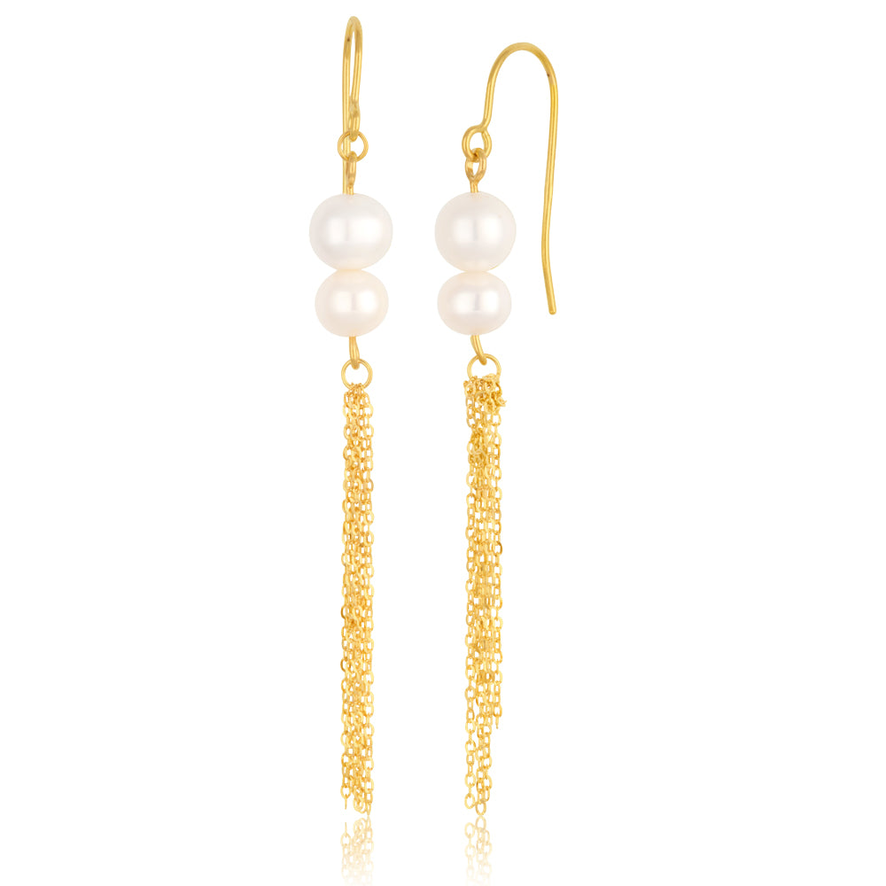 9ct Yellow Gold Freshwater Double Pearl Tassle Drop Earrings