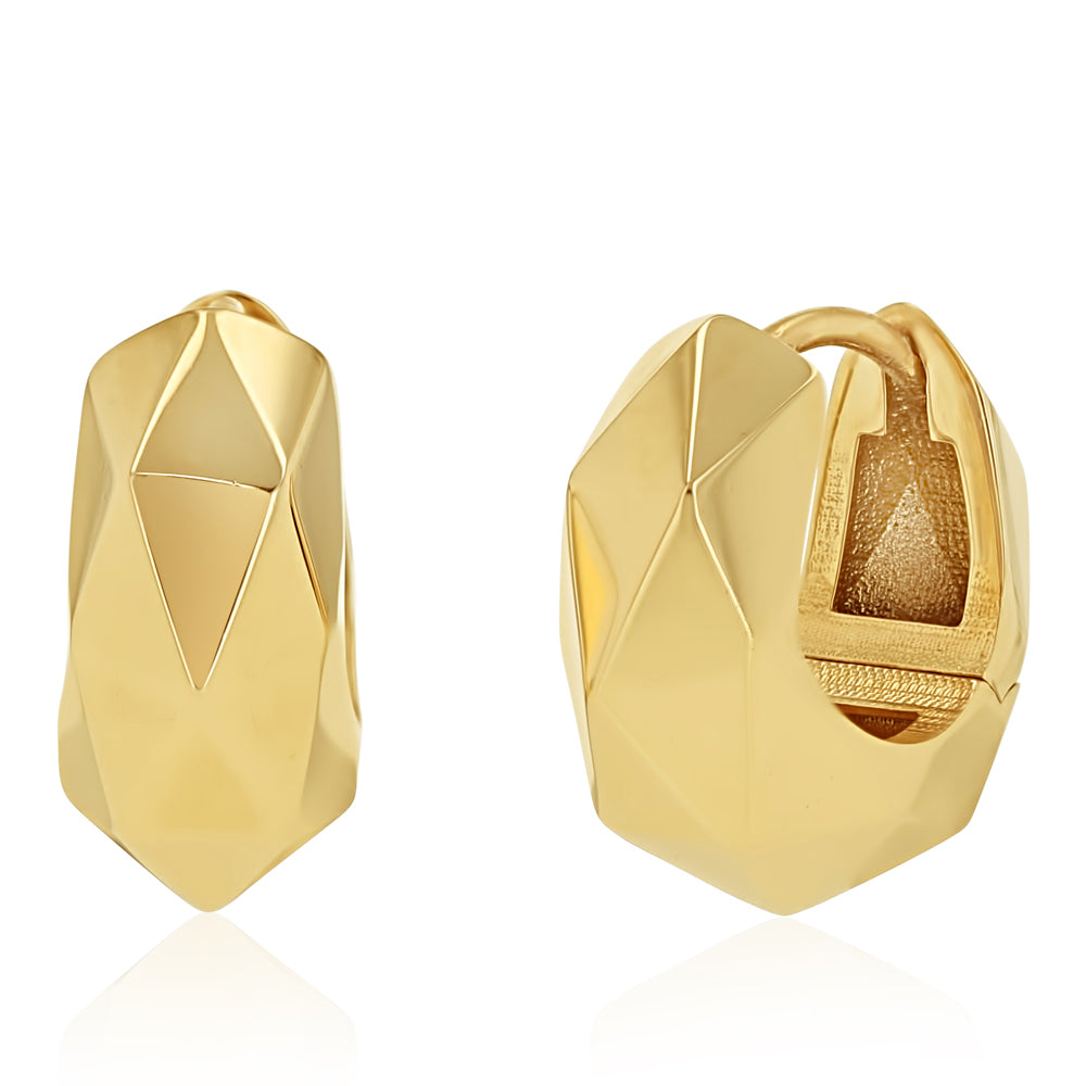 9ct Yellow Gold Geometric Pattern Huggies Hoop Earrings