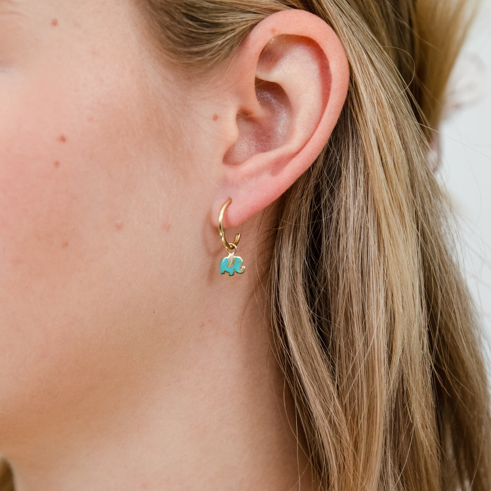 9ct Yellow Gold Green Elephant Dangling On Sleeper Earrings