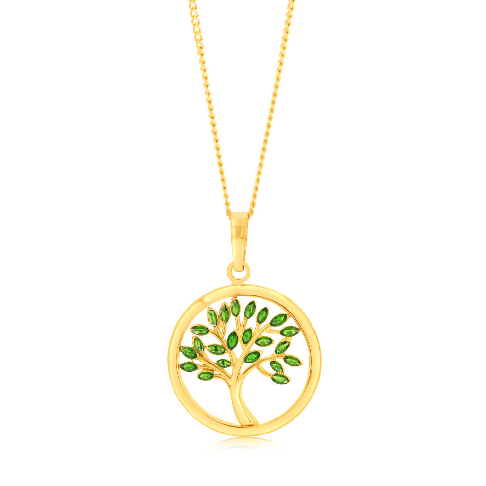 9ct Yellow Gold Green Enamel Tree Of Life Pendant
