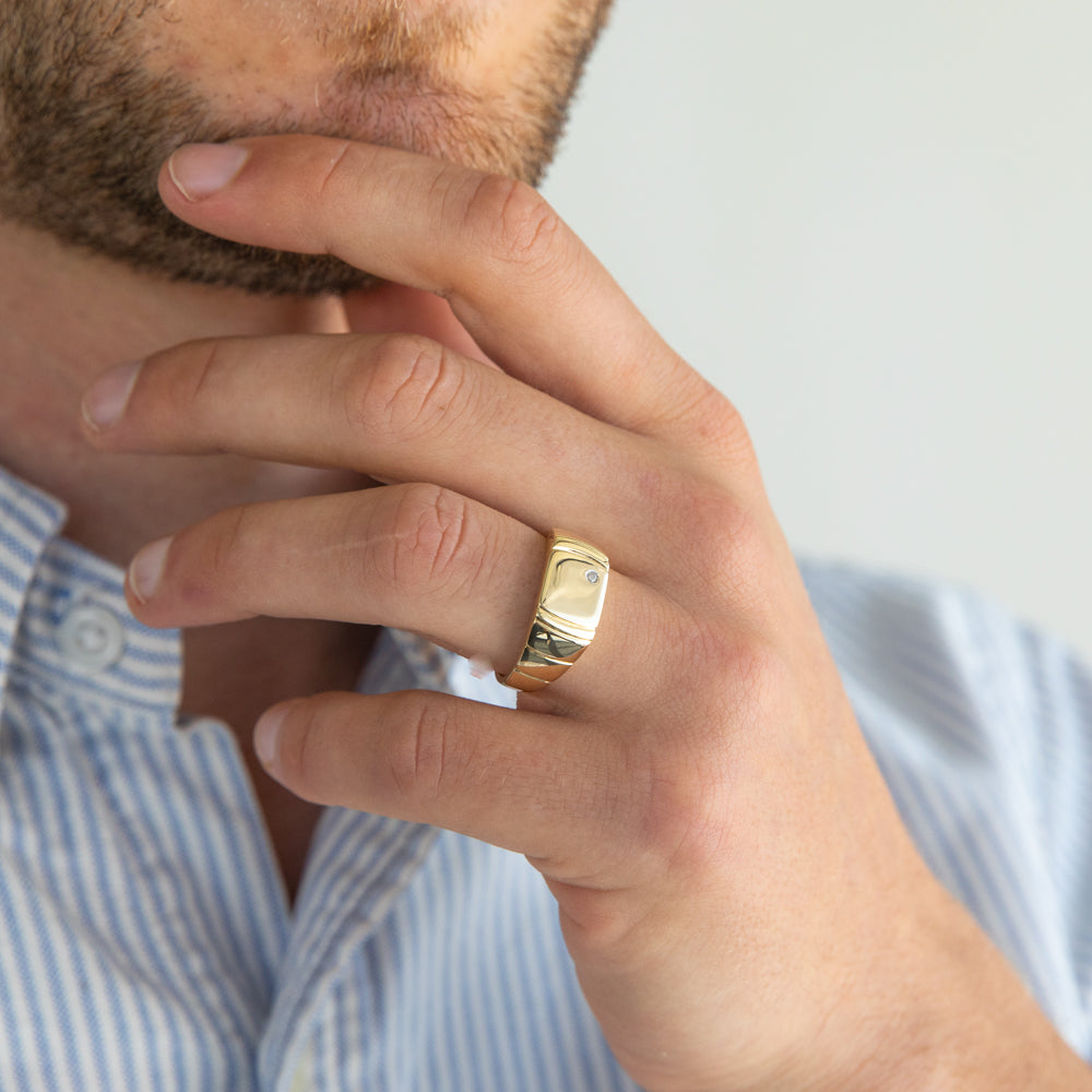 9ct Yellow Gold Grooved Diamond Ring