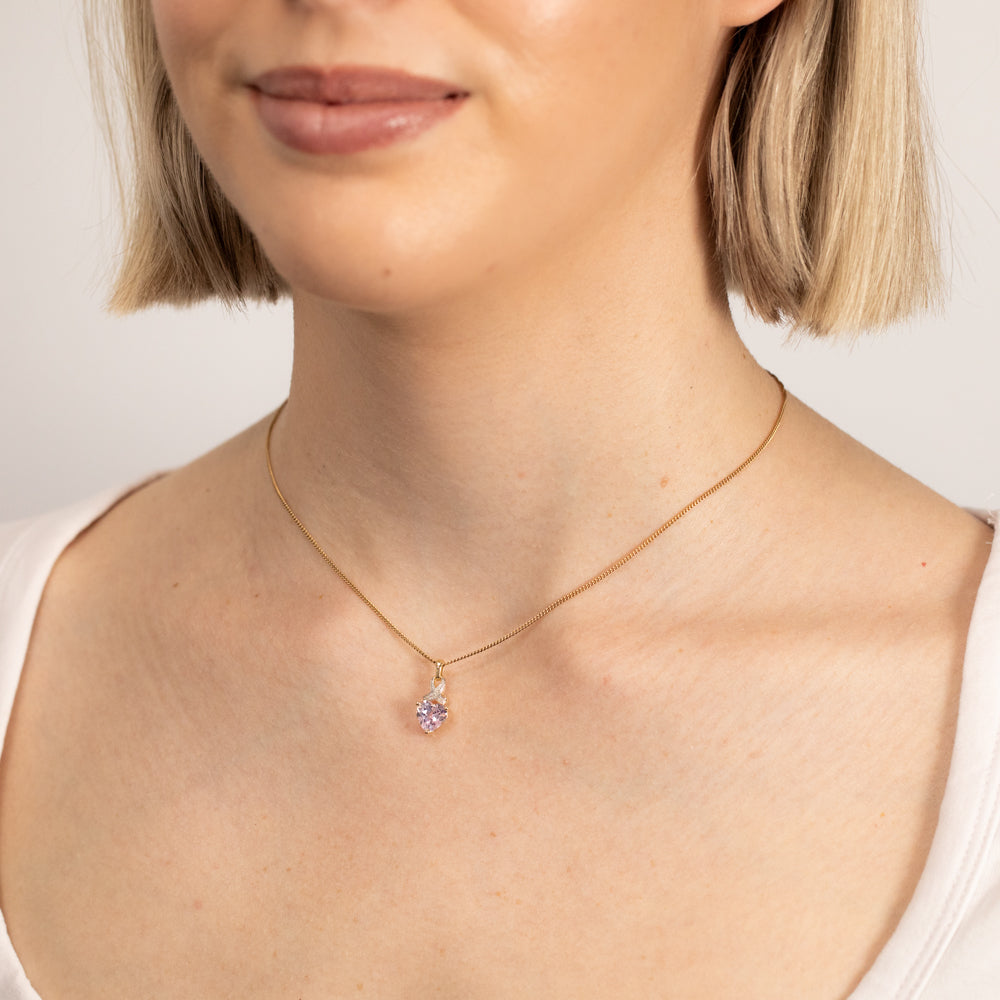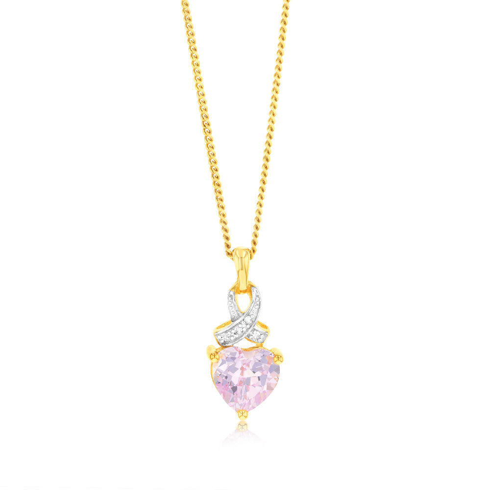 9ct Yellow Gold Heart Shaped Created Sapphire & Diamond Pendant