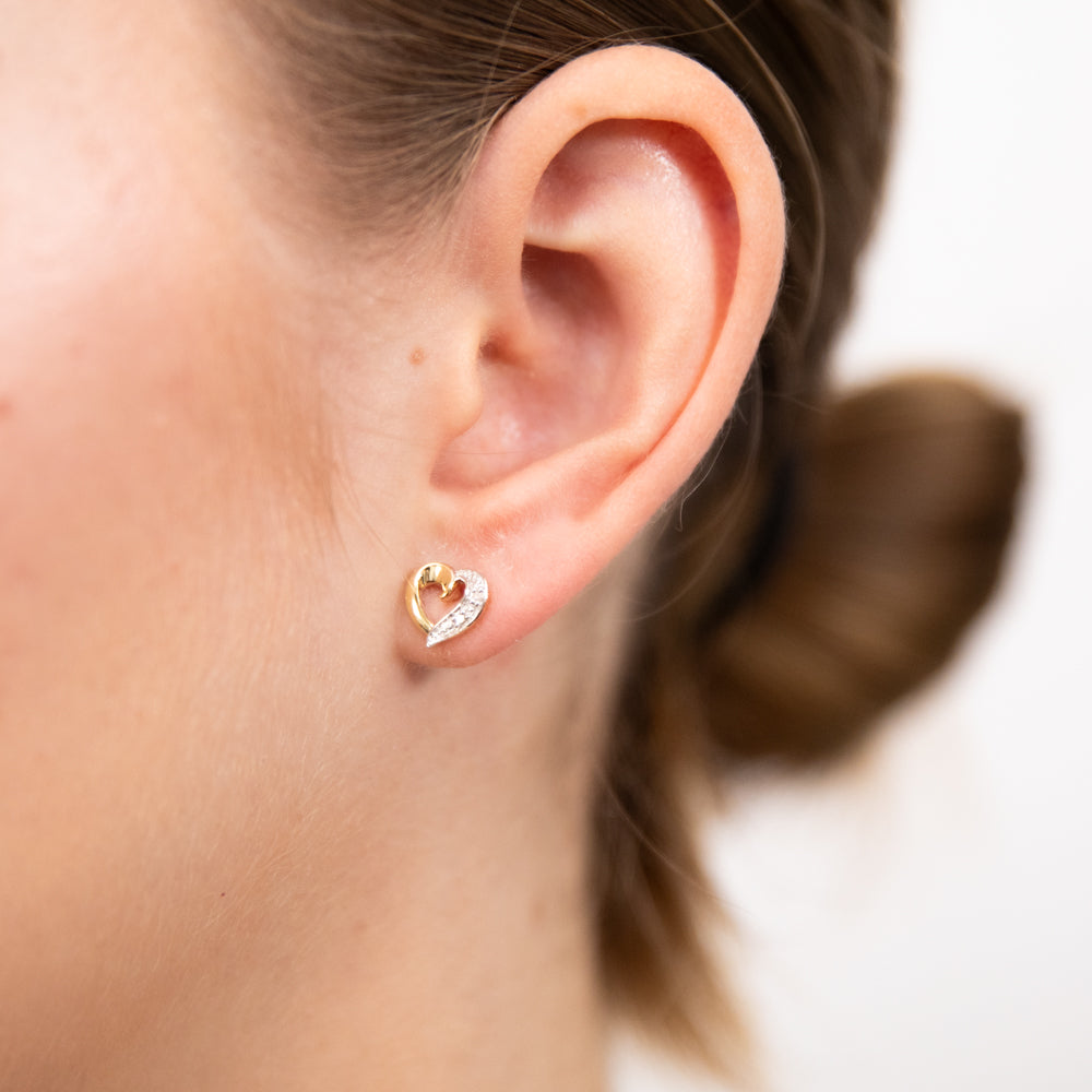 9ct Yellow Gold Heart Shaped Diamond Stud Earrings