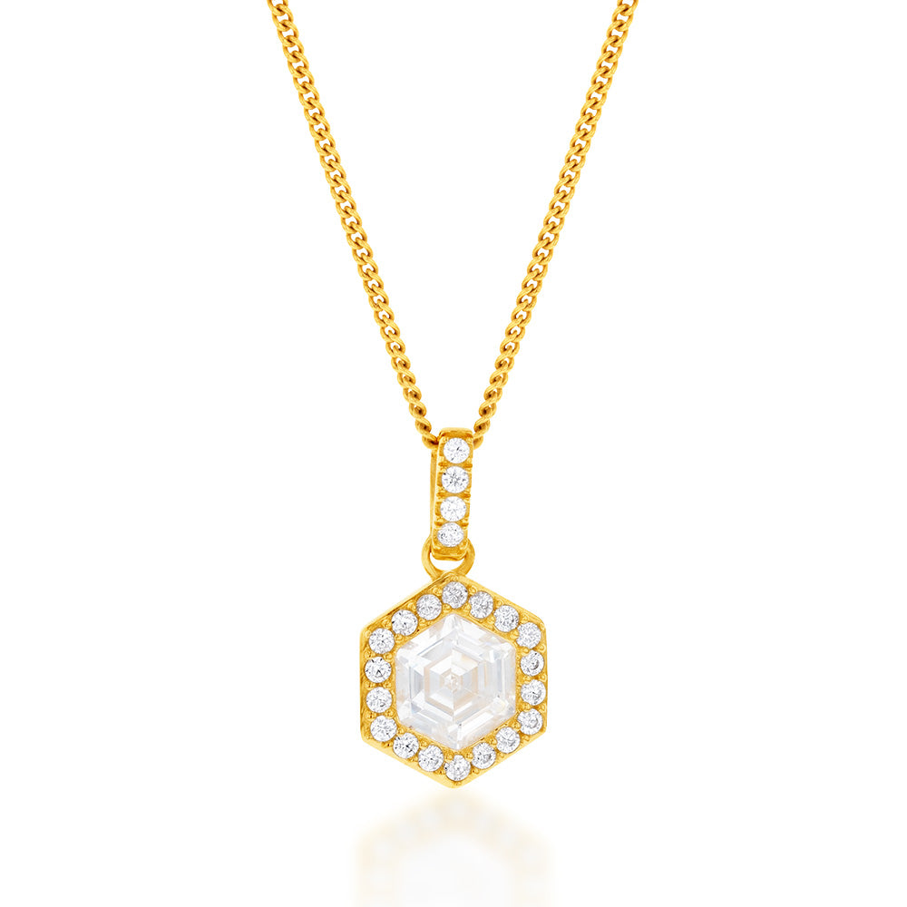 9ct Yellow Gold Hexagonal Cubic Zirconia Halo Pendant
