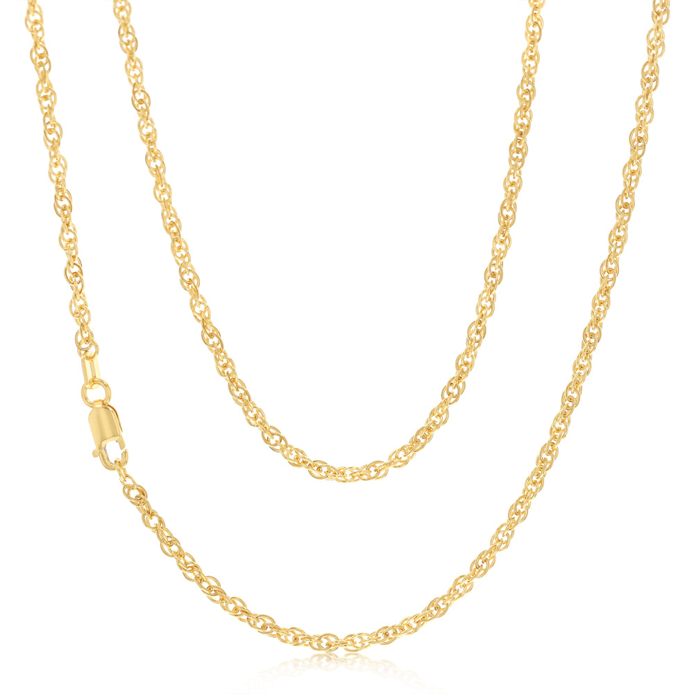 9ct Yellow Gold Hollow 42 Gauge Double Rope 45cm Chain