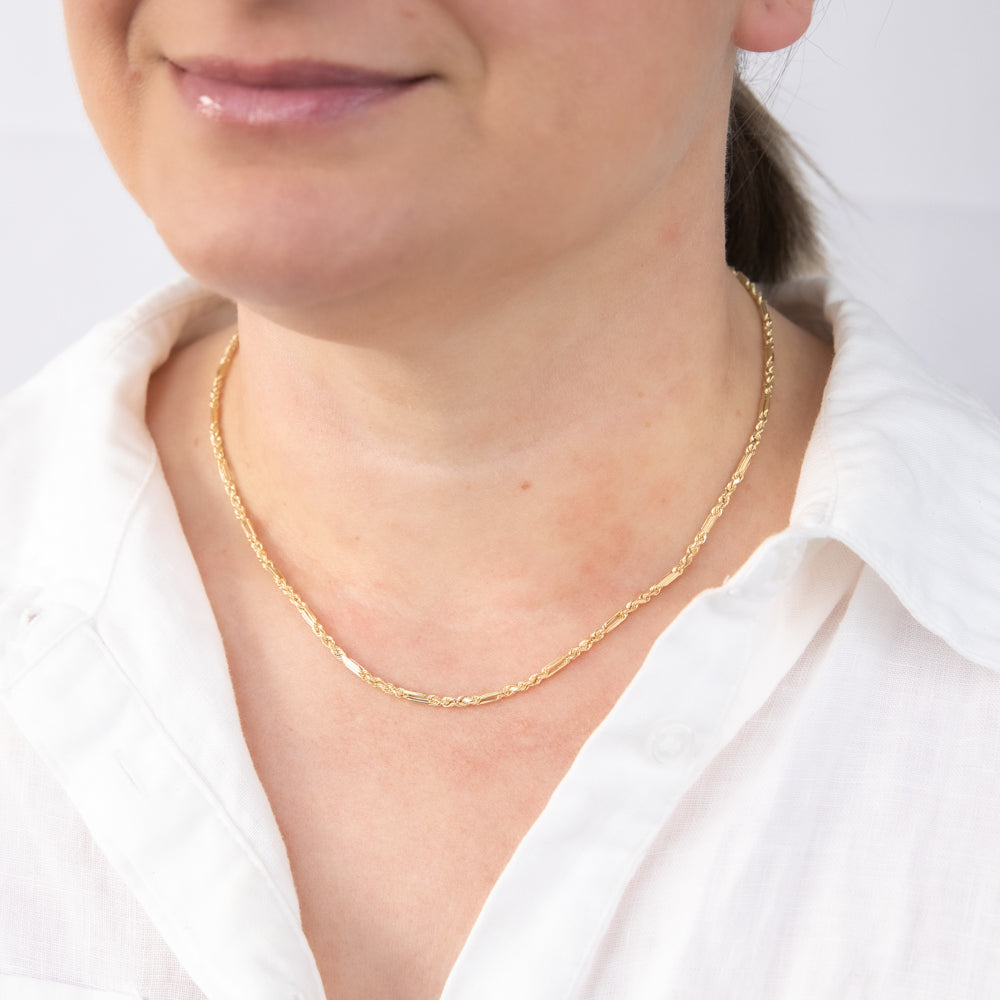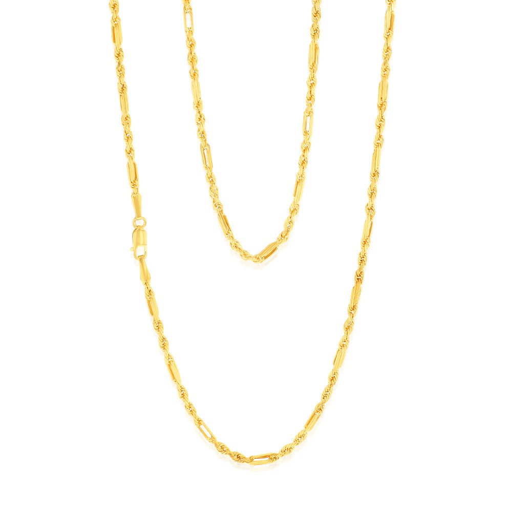 9ct Yellow Gold Hollow Diamond Cut Figarope 46cm Chain