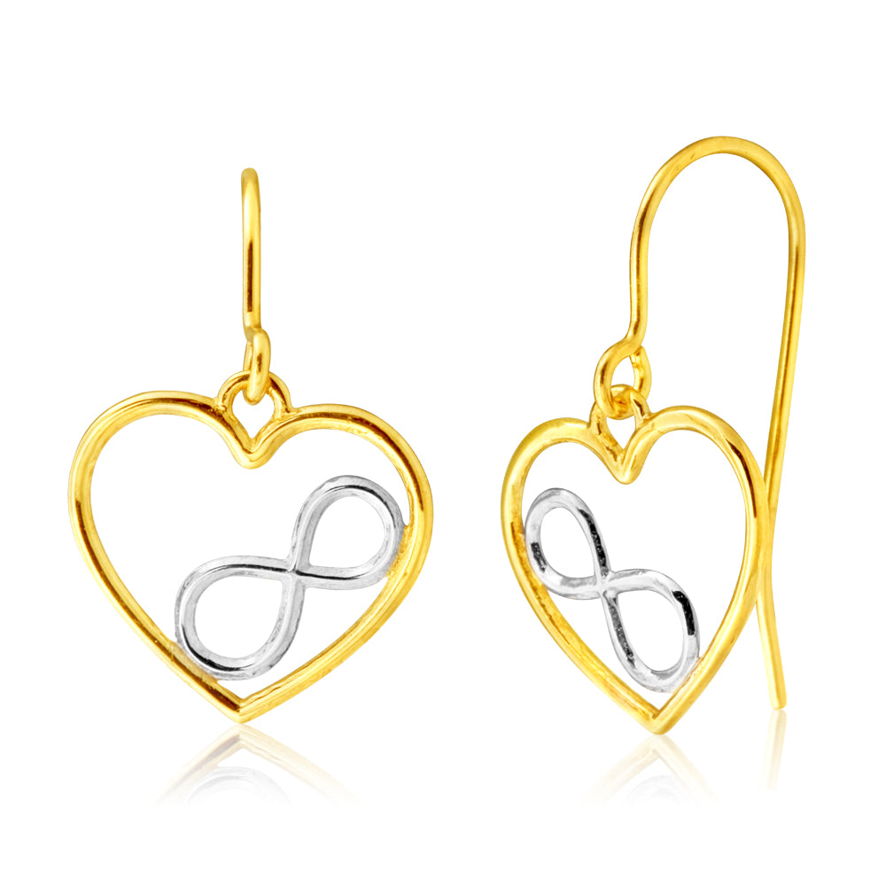 9ct Yellow Gold Infinity Heart Drop Earrings