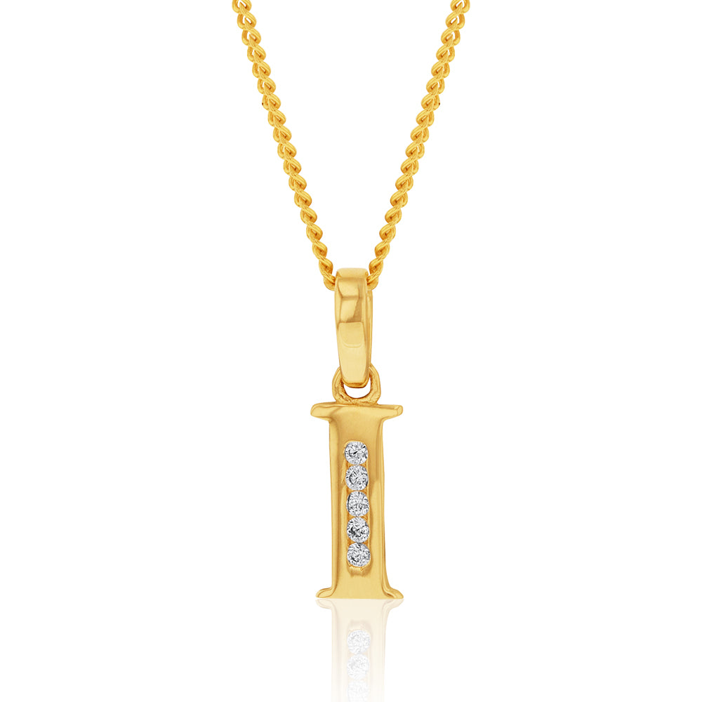 9ct Yellow Gold Initial I Zirconia Pendant