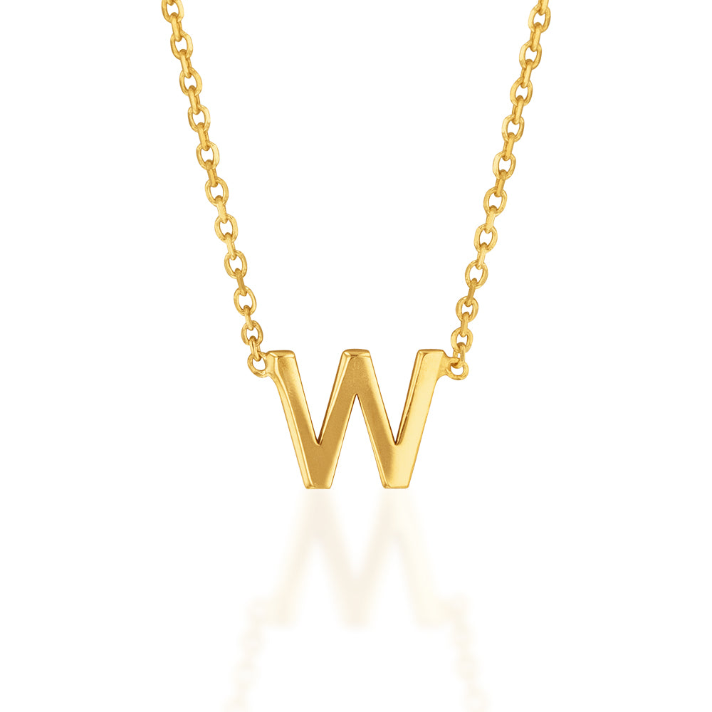 9ct Yellow Gold Initial "W" Pendant on 43cm Chain