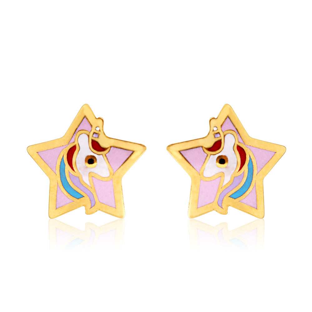 9ct Yellow Gold Lacquerized Star Stud Earrings