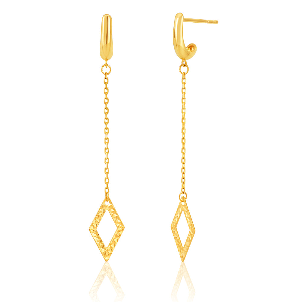 Show your edgy style with these 9ct gold-colour diamond-shape dangling drop earrings.