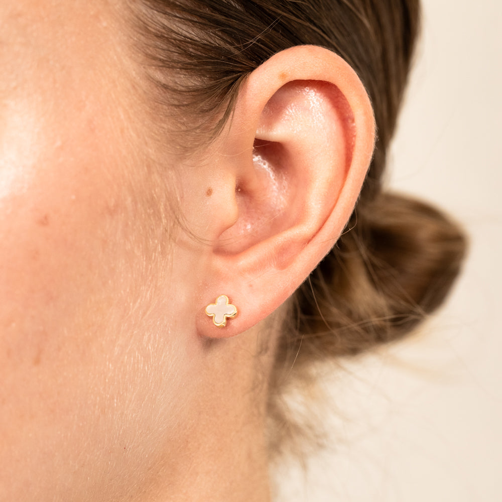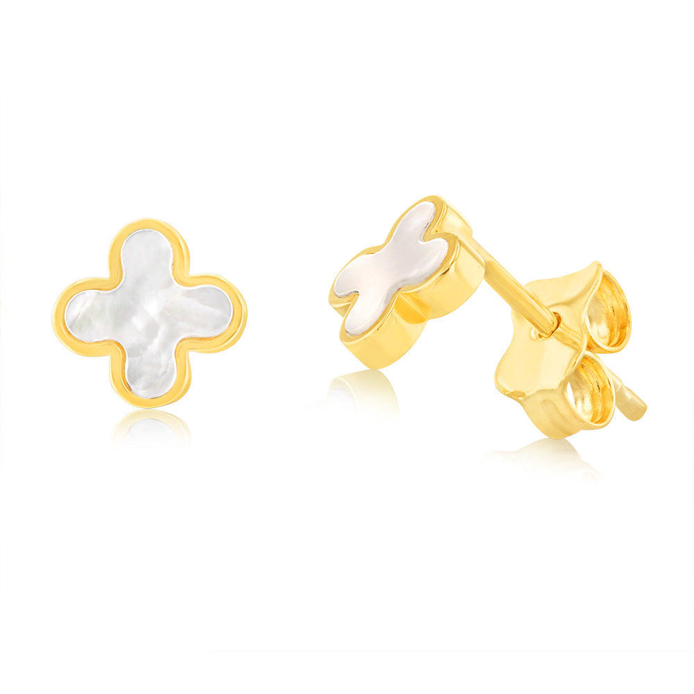 9ct Yellow Gold Mother Of Pearl Petal Stud Earrings