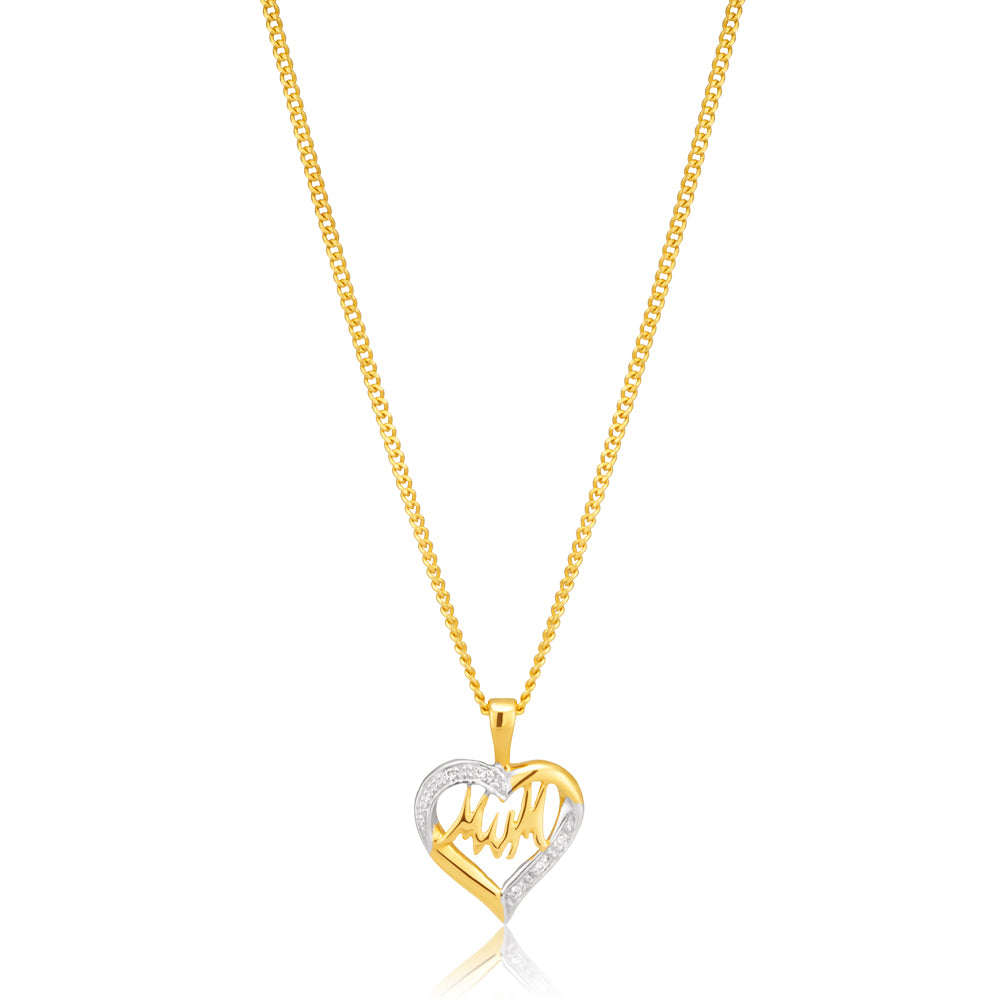 9ct Yellow Gold Mum Diamond Heart Pendant