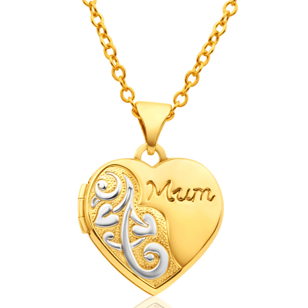 9ct Yellow Gold 'Mum' Floral Heart Locket