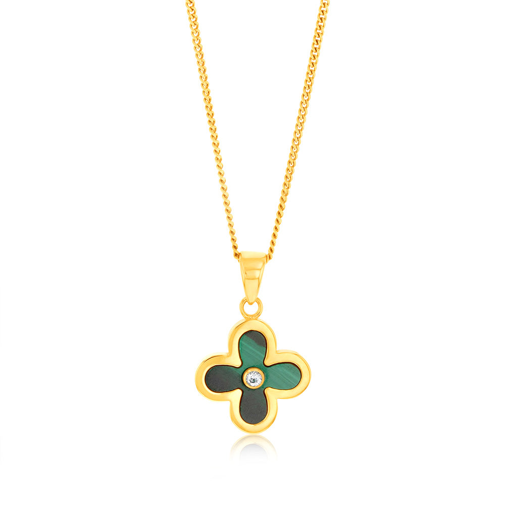 9ct Yellow Gold Natual Malachite 4 Leaf Clover Pendant