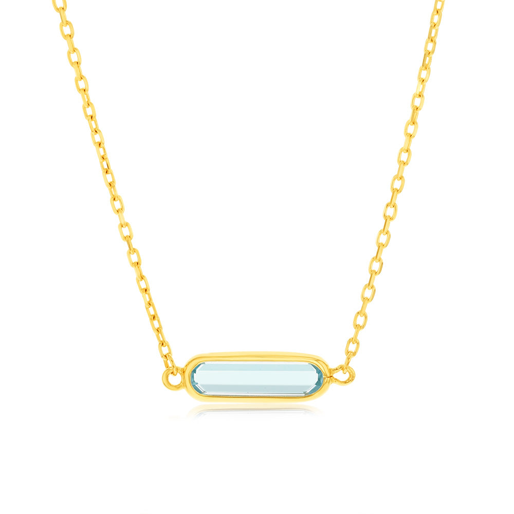 9ct Yellow Gold Natural Blue Topaz Pendant On Chain