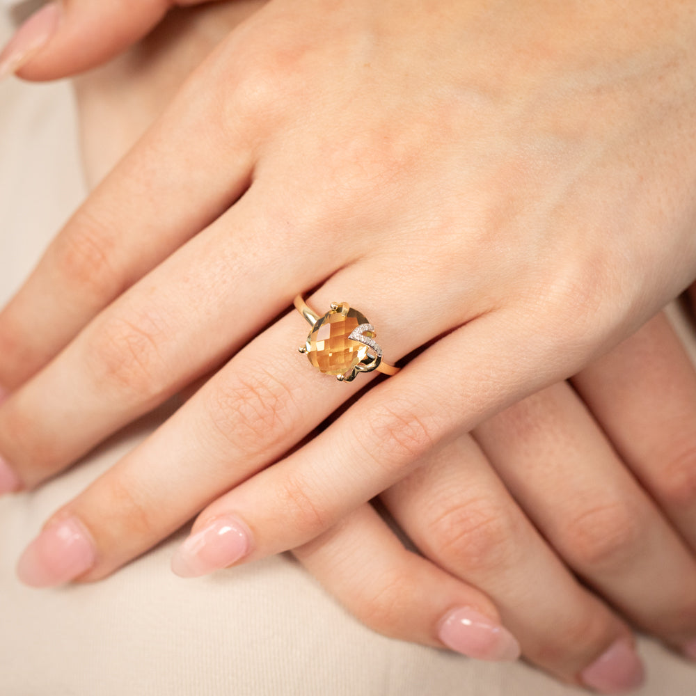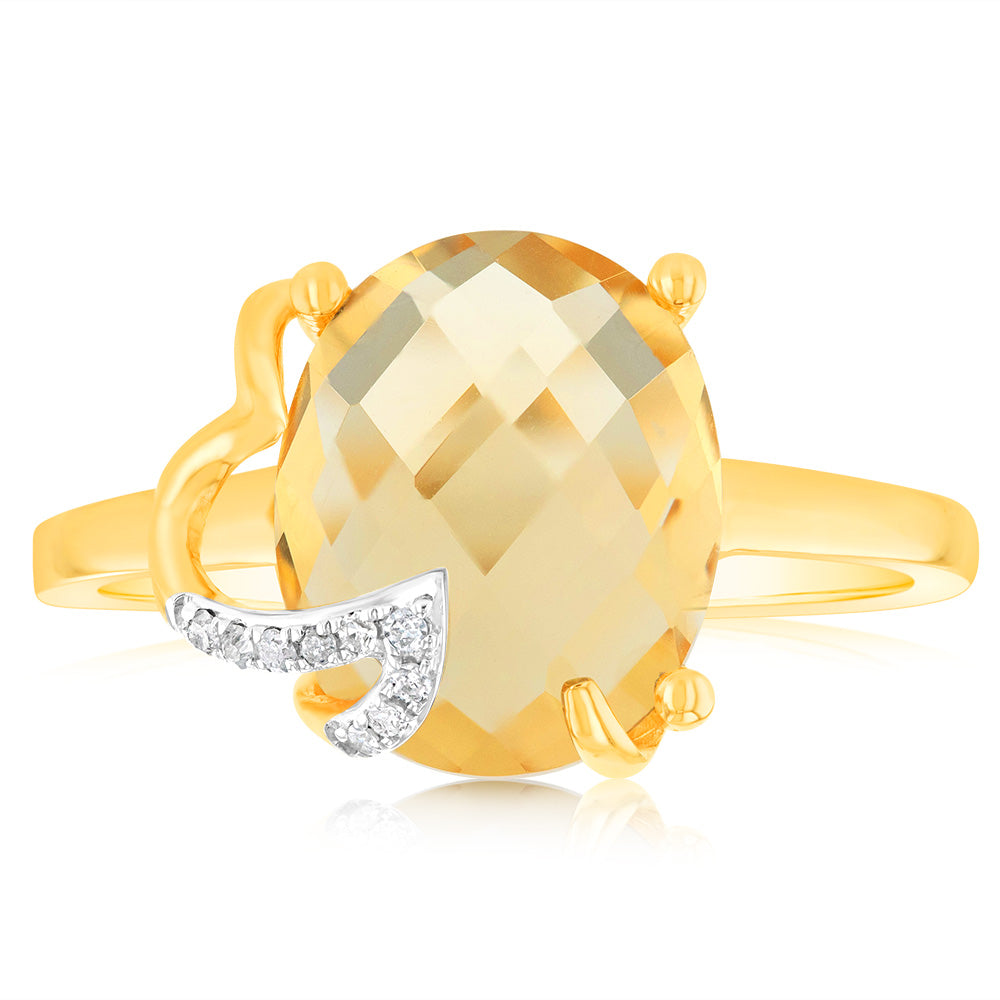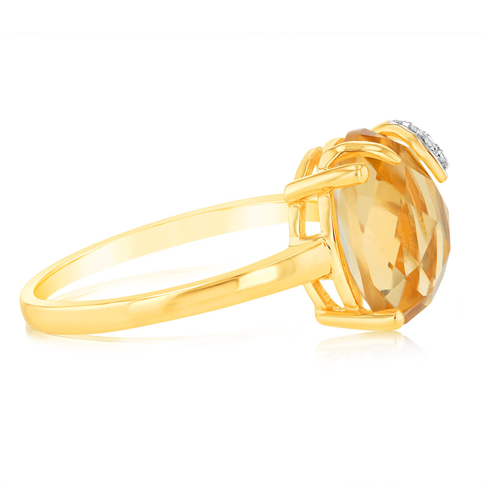 9ct Yellow Gold Natural Citrine And Diamond Ring