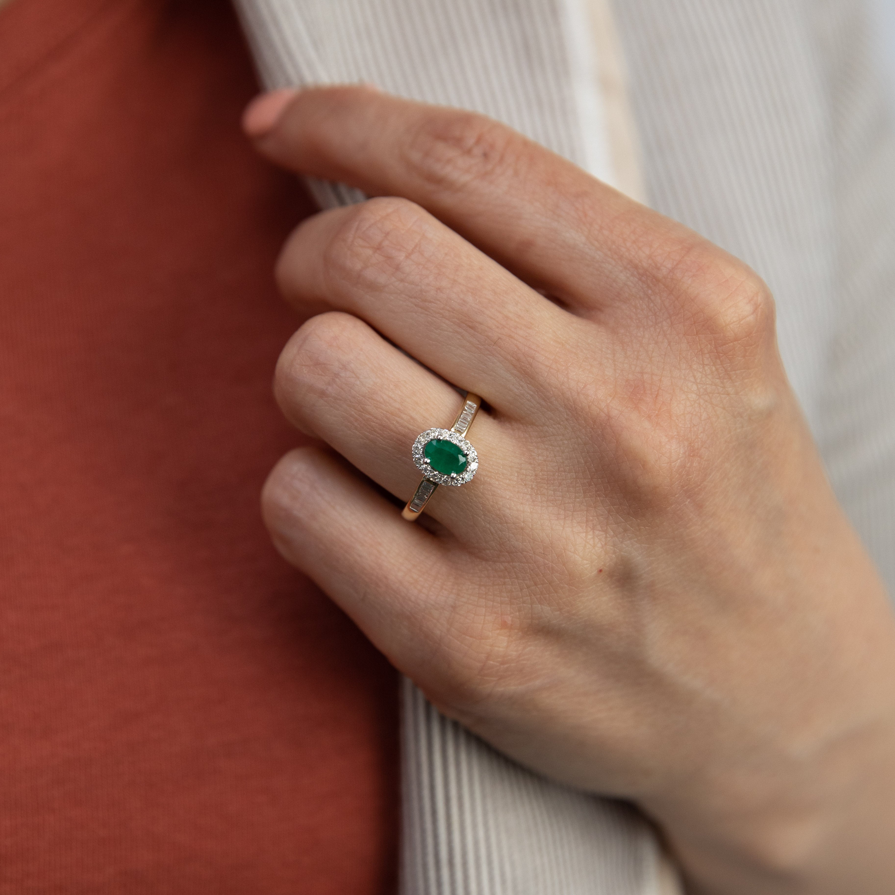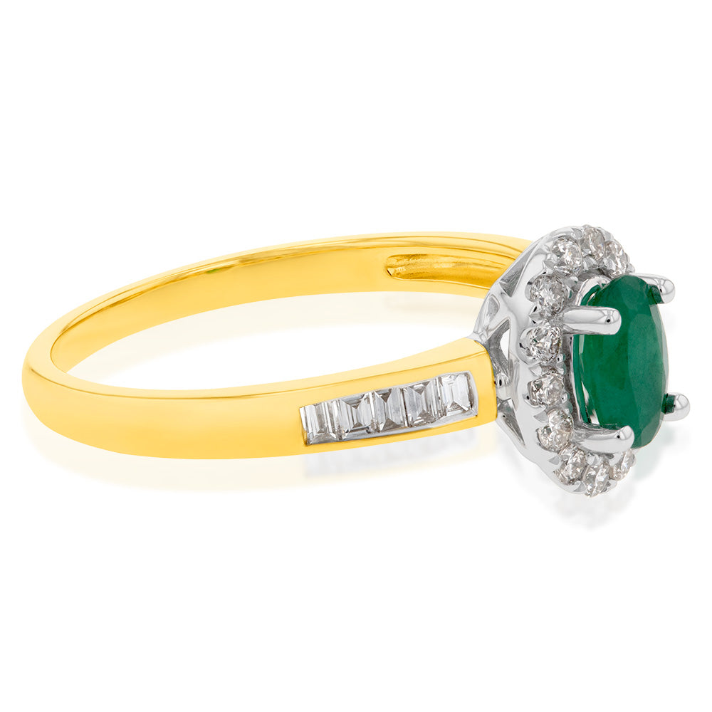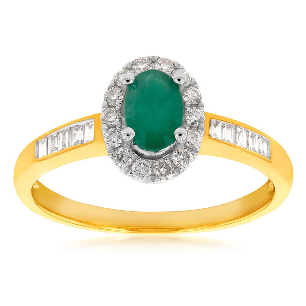 9ct Yellow Gold Natural Emerald and Diamond Oval Halo Ring