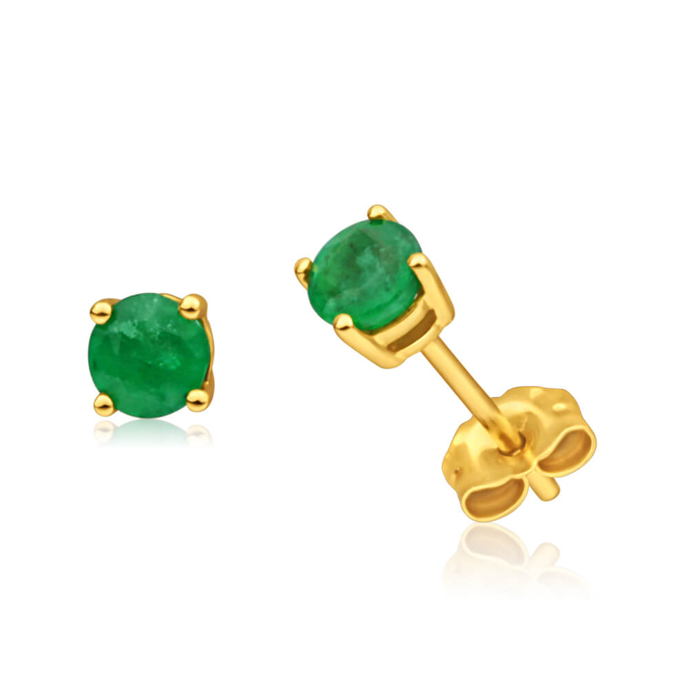 9ct Yellow Gold Natural Emerald Stud Earrings