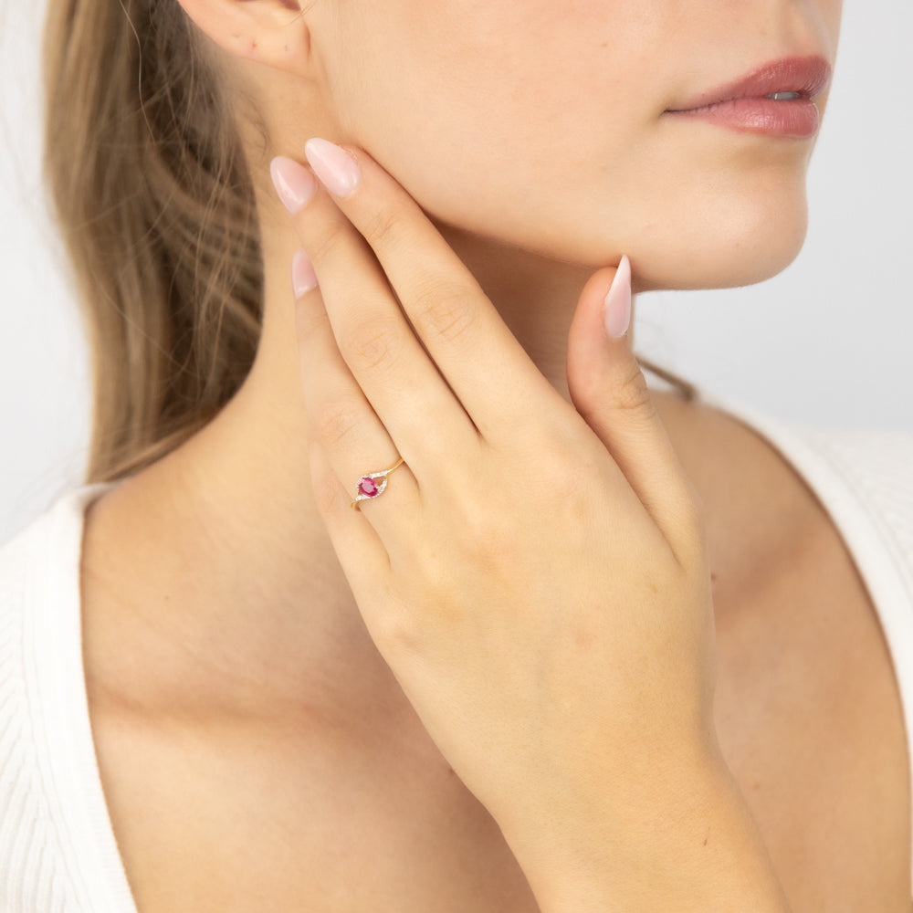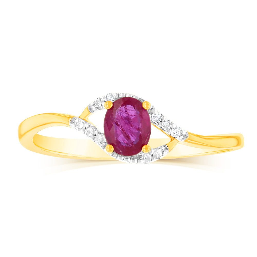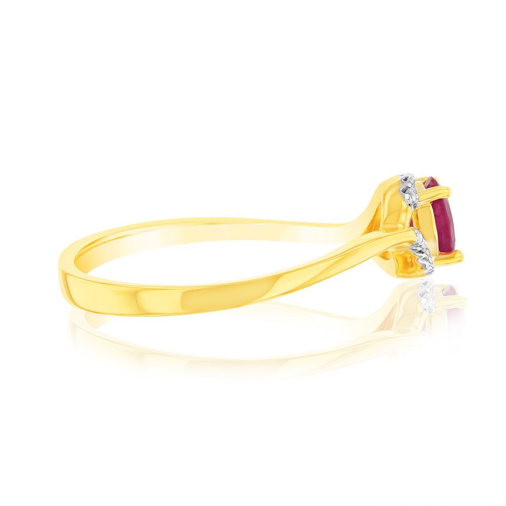 9ct Yellow Gold Natural Ruby 10Diamonds Ring