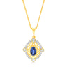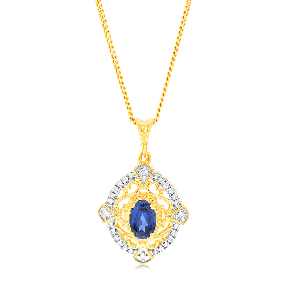 9ct Yellow Gold Oval Created Sapphire And Diamond Pendant