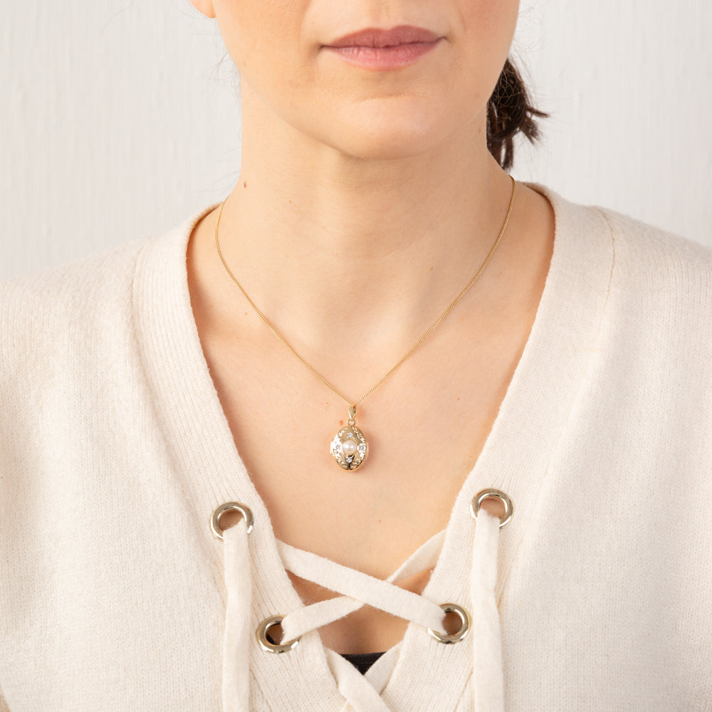 9ct Yellow Gold Oval Pearl And Diamond Locket