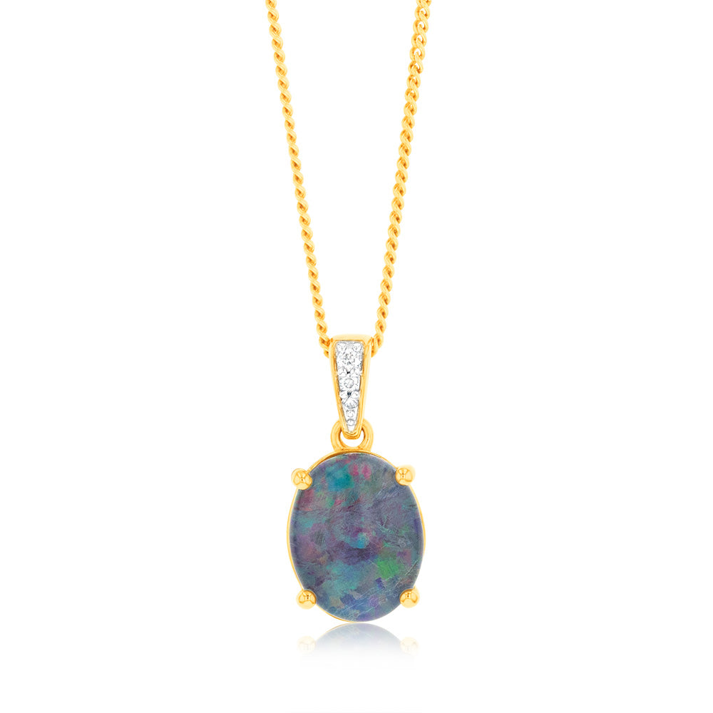 9ct Yellow Gold Oval Triplet Opal Diamond Pendant