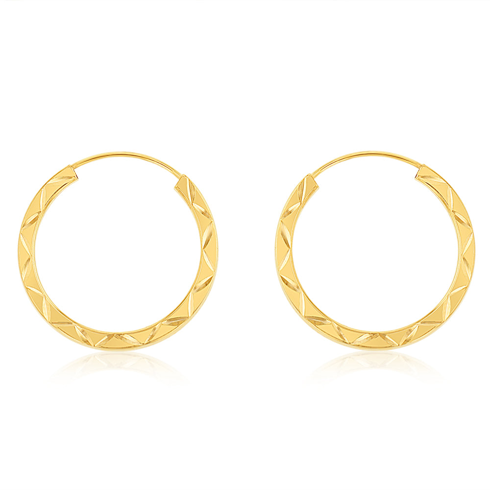 9ct Yellow Gold Patterned 16mm Sleeper Earrings