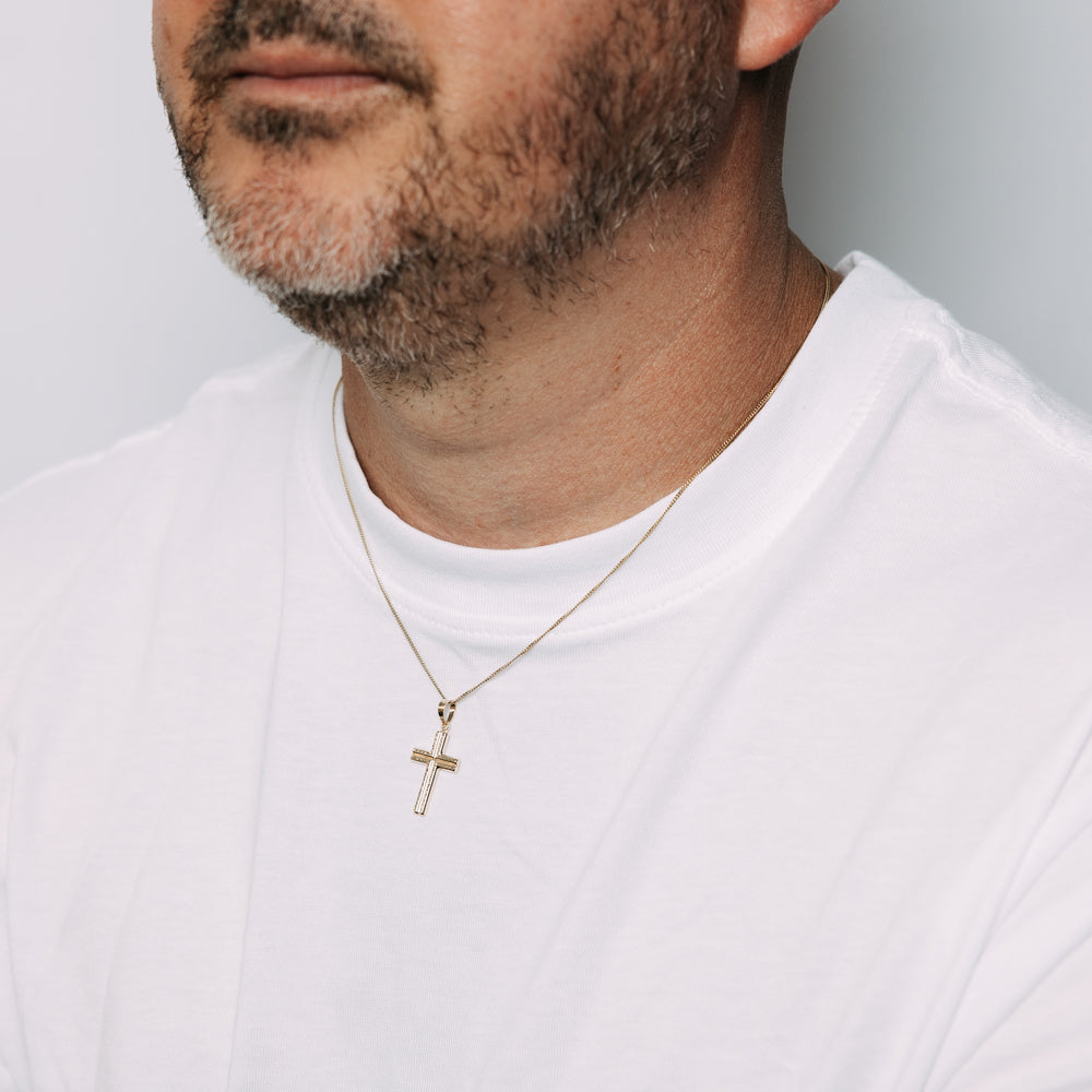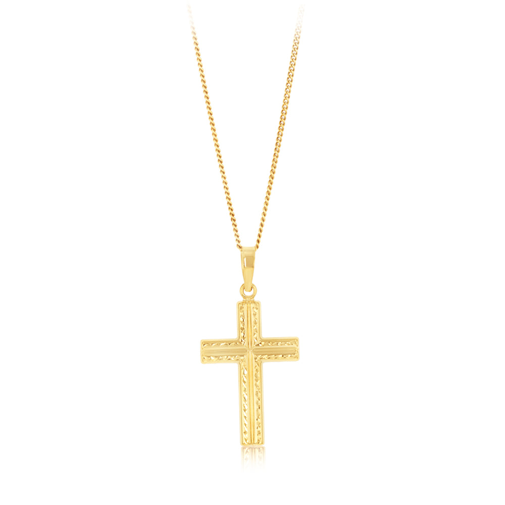 9ct Yellow Gold Patterned Cross Pendant