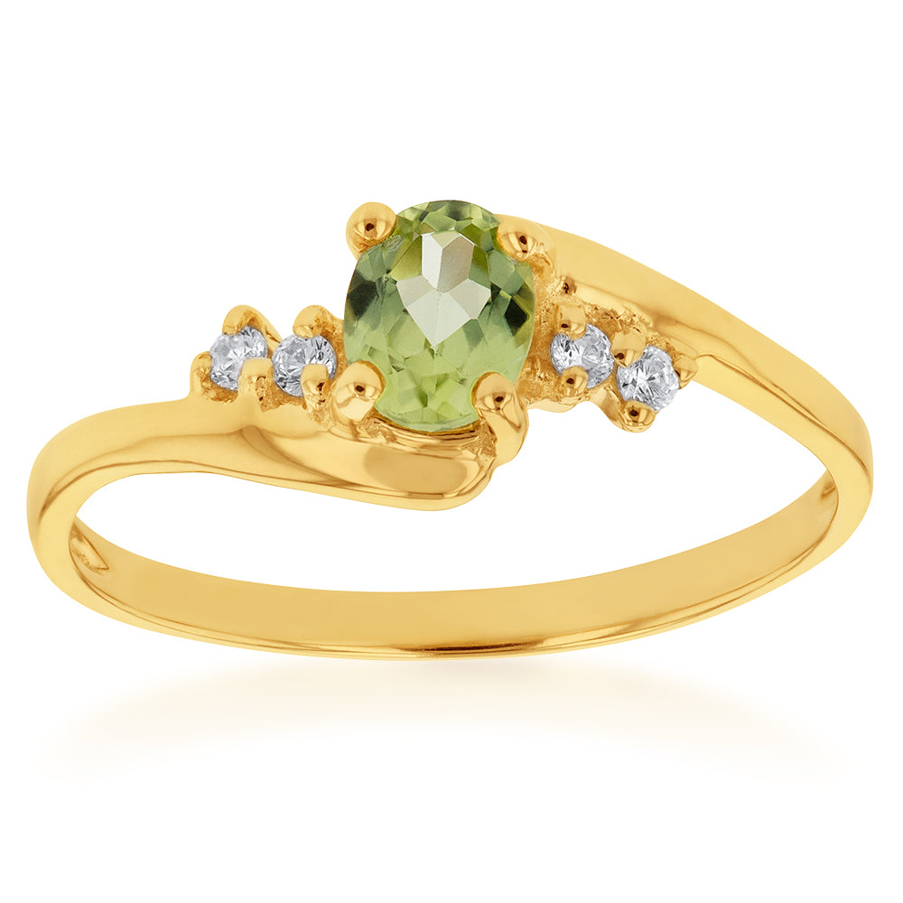 9ct Yellow Gold Peridot and Zirconia Ring