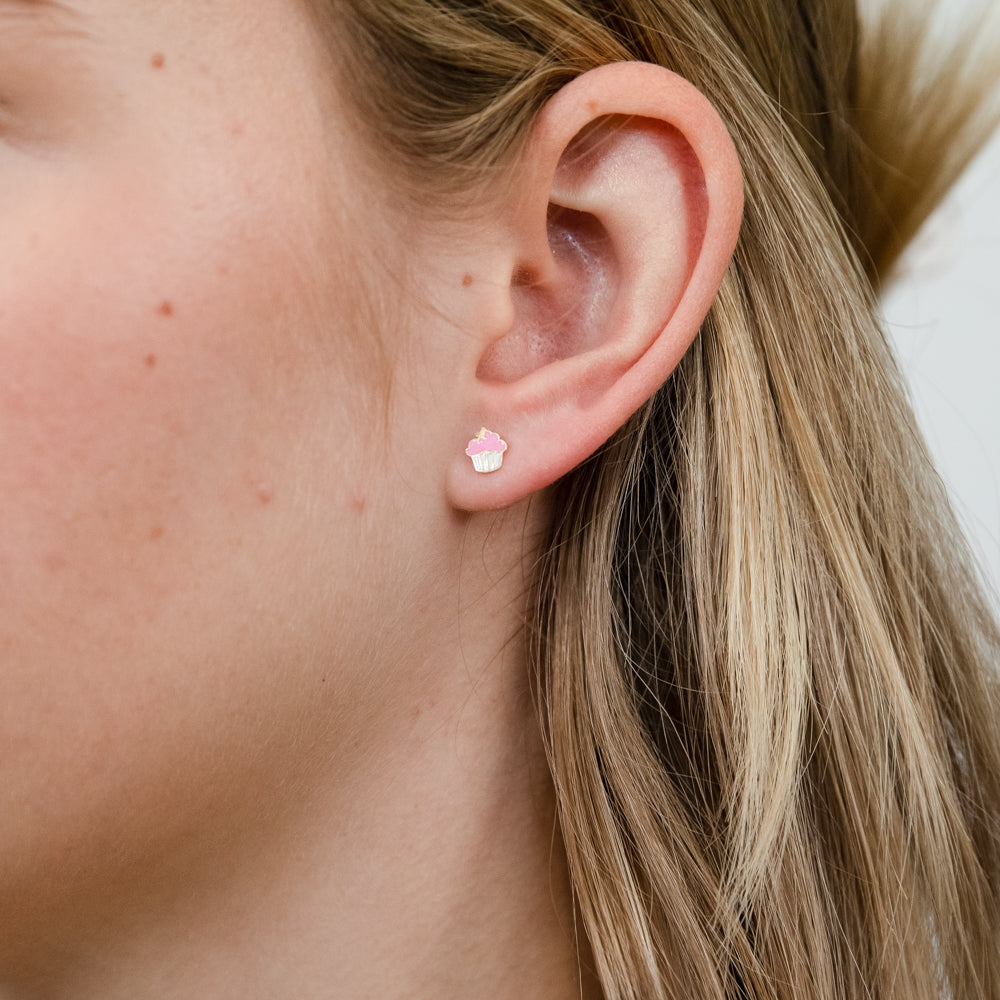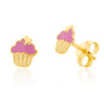 9ct Yellow Gold Pink Muffin Stud Earrings