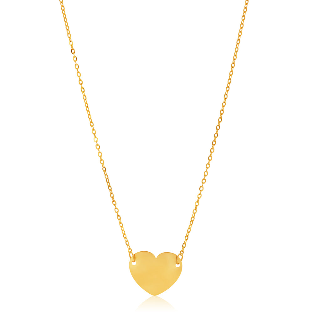 9ct Yellow Gold Plain Heart Disc Pendant on 42cm Chain