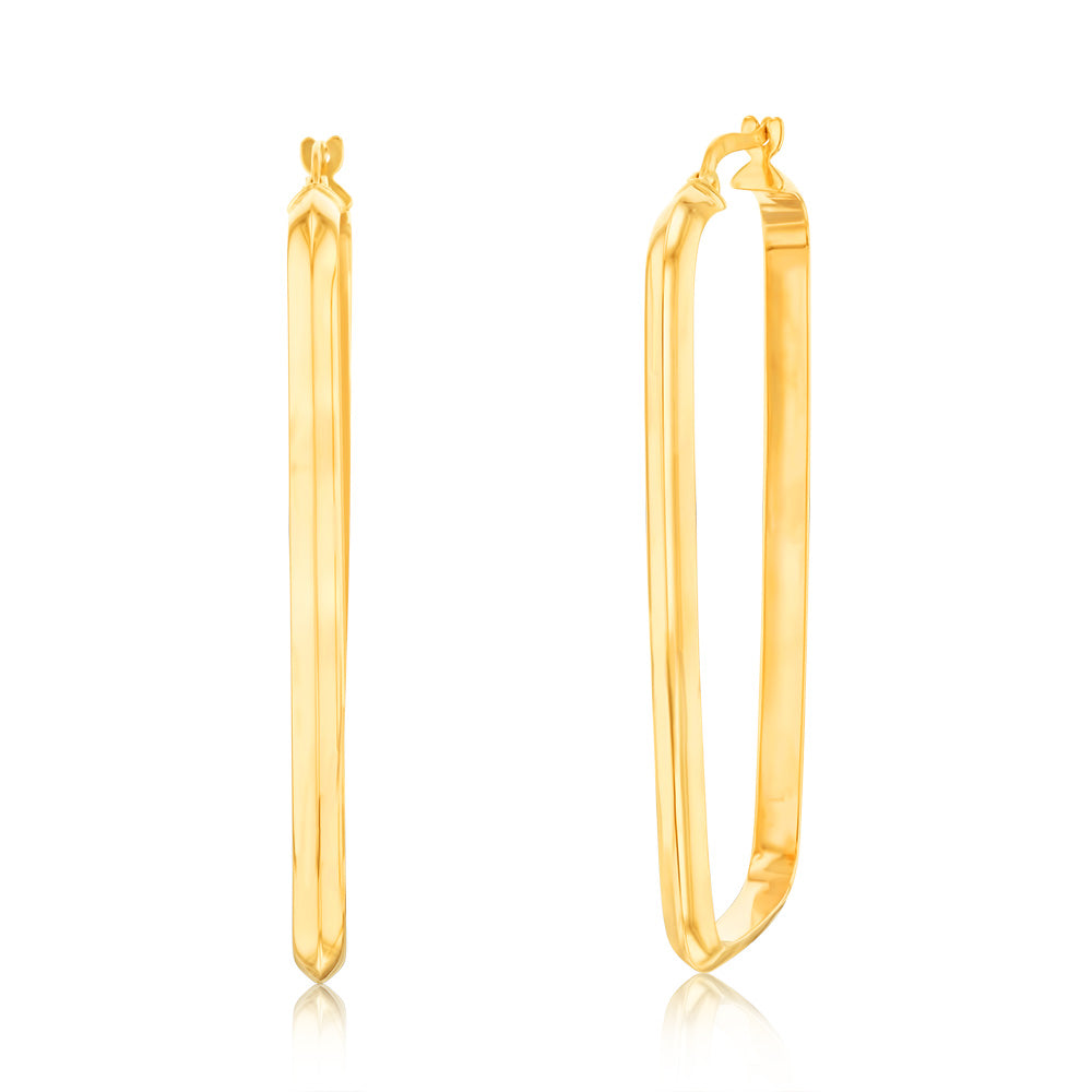 9ct Yellow Gold Polished Rectangle Hoop Earrings