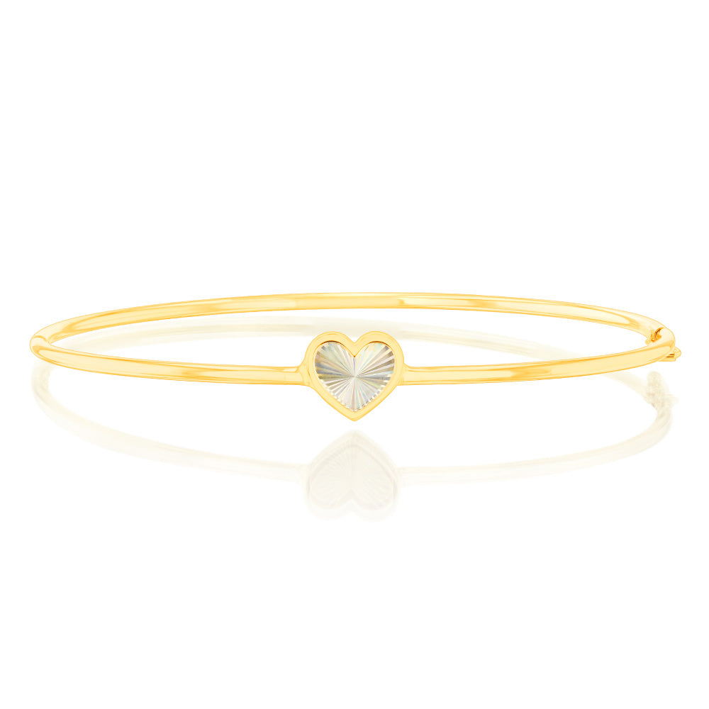 9ct Yellow Gold Rainbow Heart Hinged Bangle