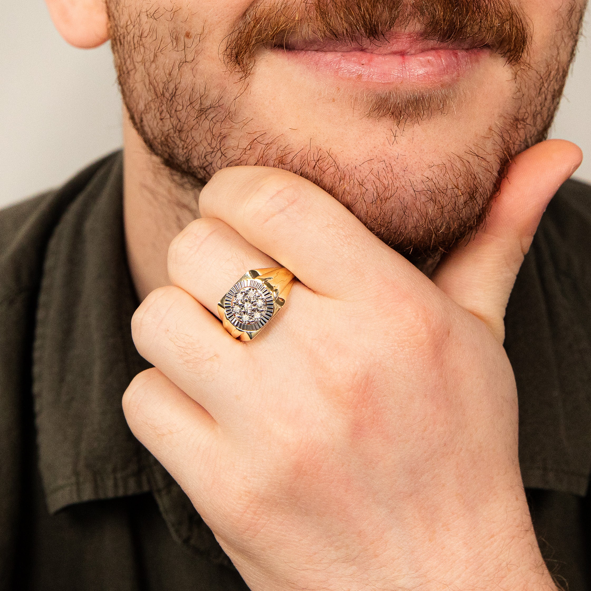 9ct Yellow Gold & Rhodium Diamond Gents Ring Set With 7 Diamonds
