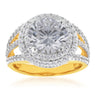 9ct Yellow Gold Round Double Halo Zirconia Split Band Ring
