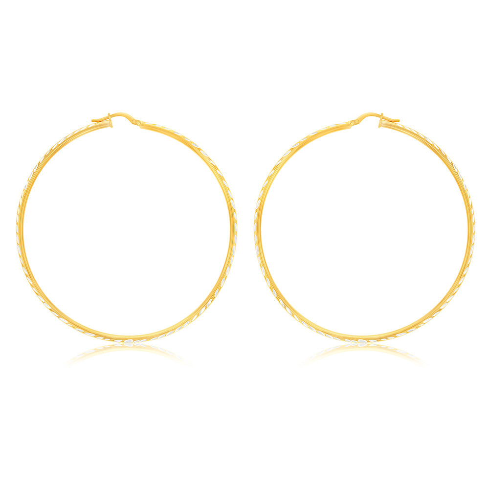 9ct Yellow Gold Silver Filled 60mm Hoop Earrings with diamond cut feature