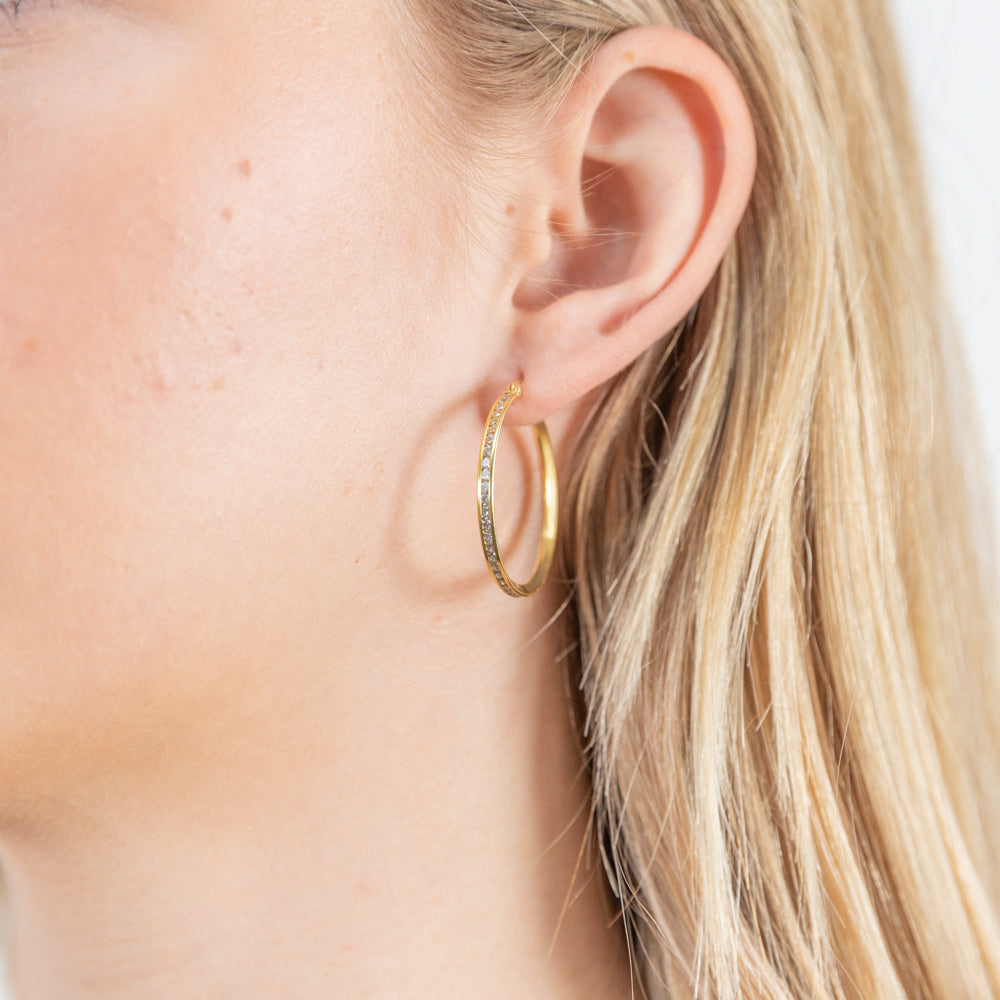 9ct Yellow Gold Silver Filled Cubic Zirconia 28mm Hoop Earrings