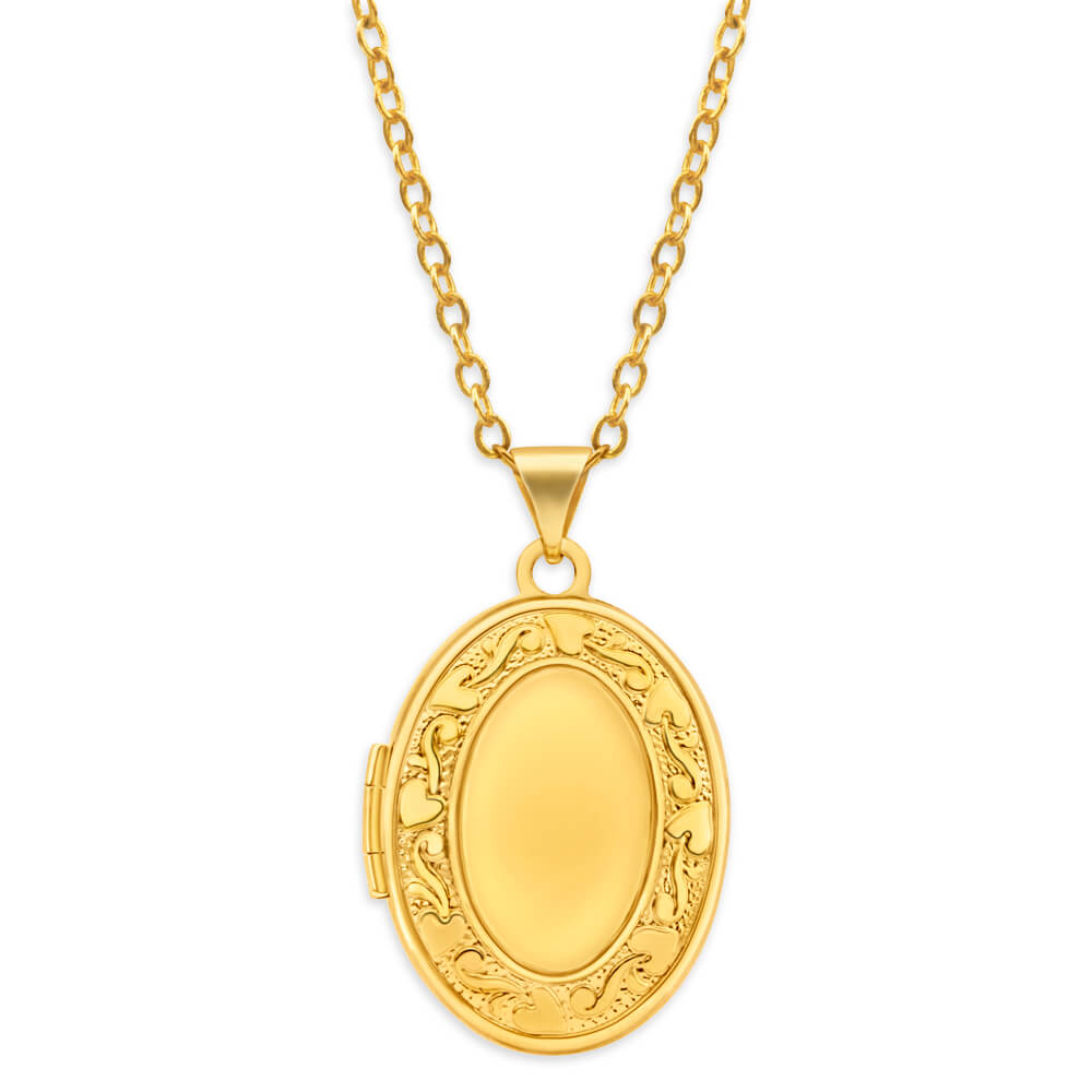 9ct Yellow Gold Silver Filled Oval Emboss Edge Locket