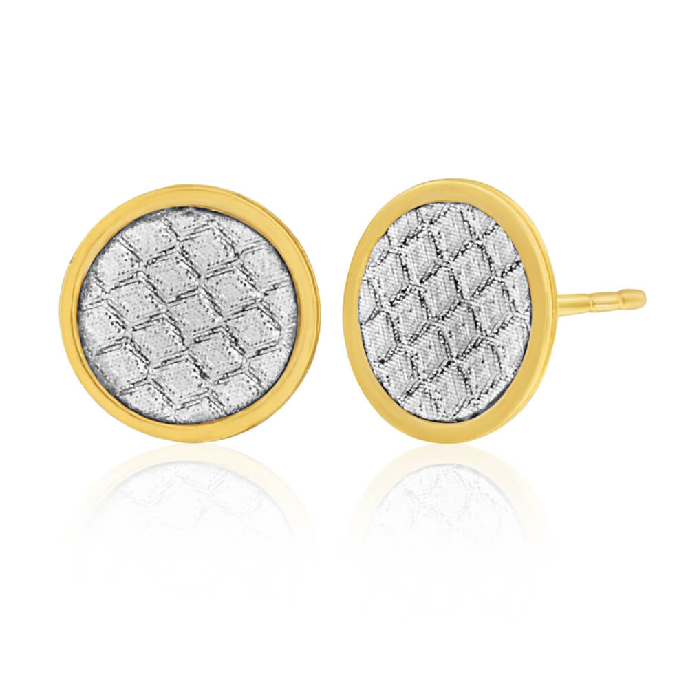 9ct Yellow Gold Silver Filled Stardust Button Studs Earrings