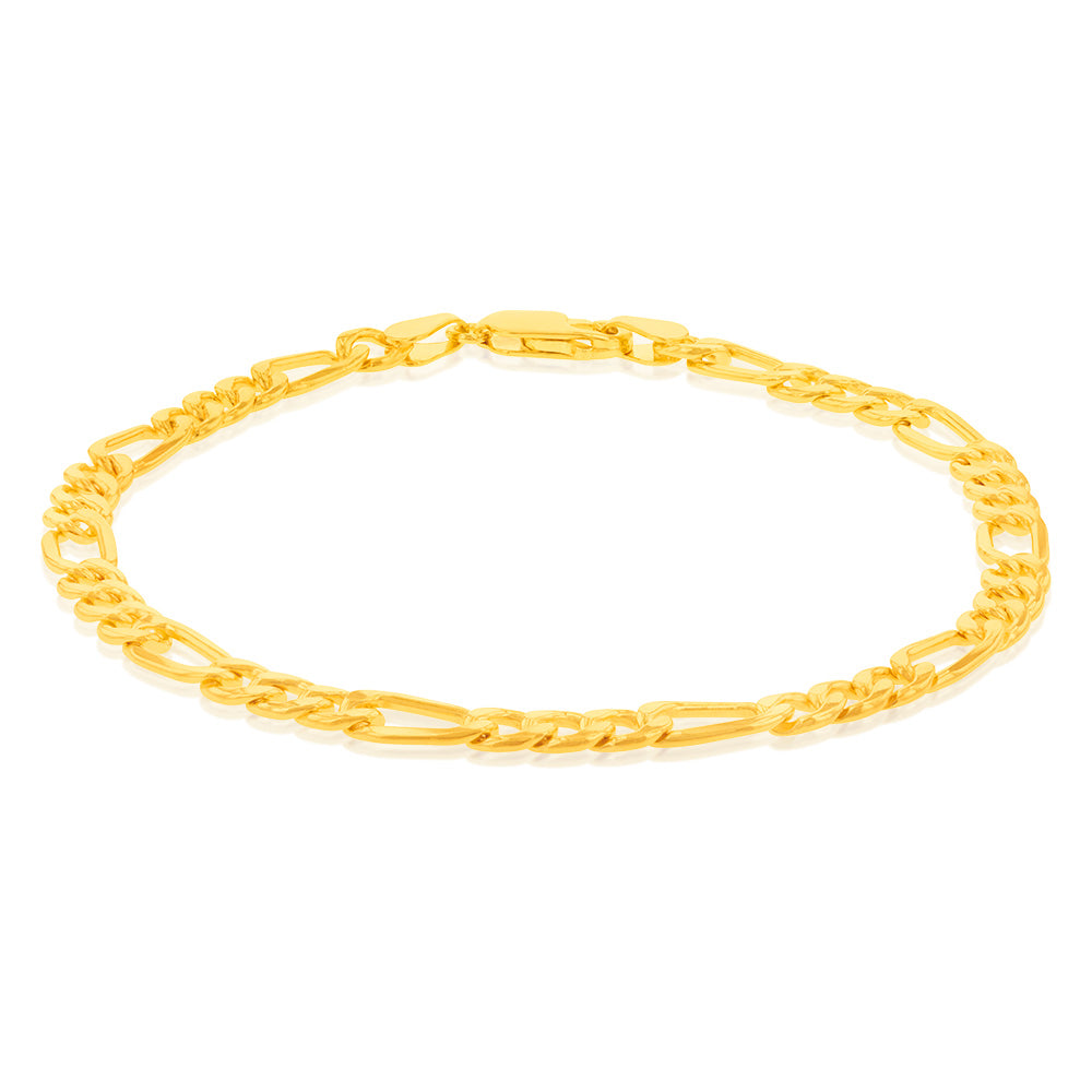 9ct Yellow Gold Silverfilled 115Gauge 1:3 Figaro 21cm Bracelet