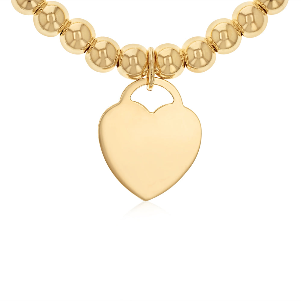 9ct Yellow Gold Silverfilled Beaded Bracelet with Heart Charm