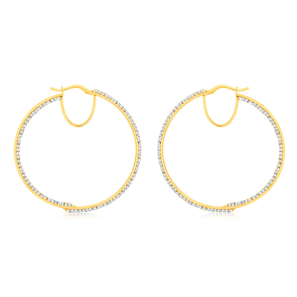 9ct Yellow Gold Silverfilled Crystals On Hoop Earrings