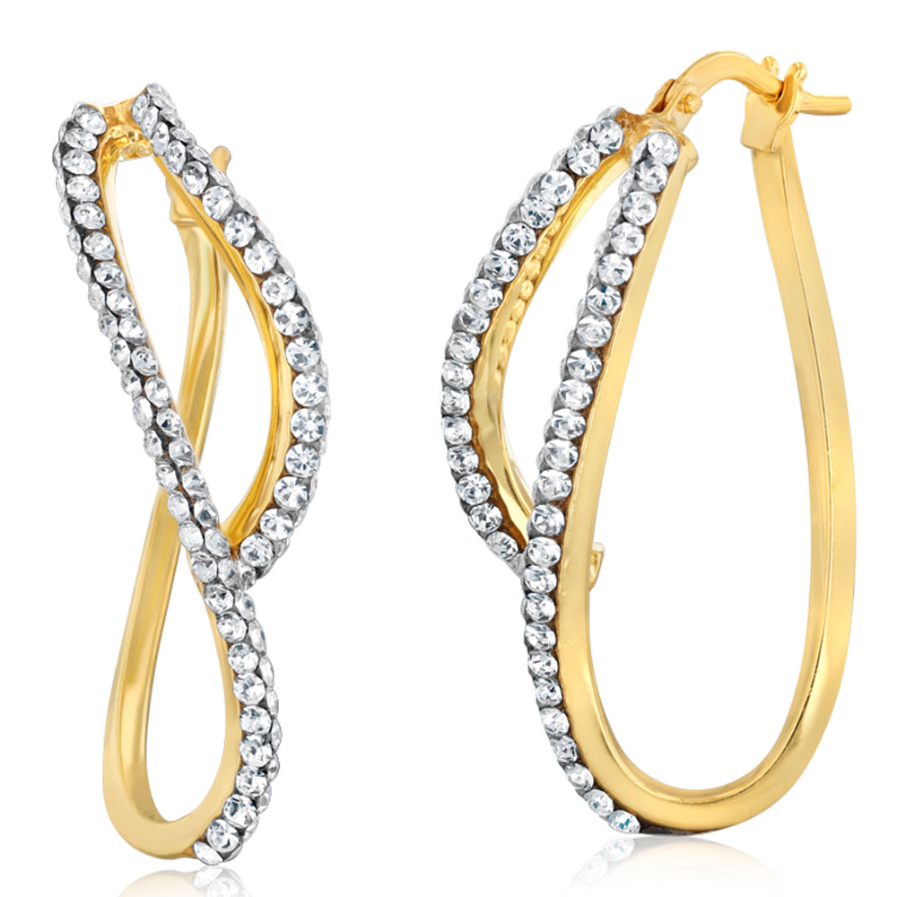 9ct Yellow Gold Silverfilled Crystals On Twisted Hoop Earrings