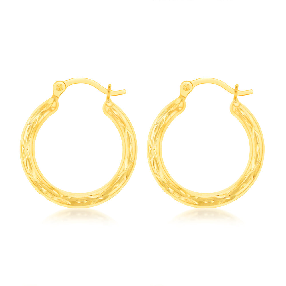 9ct Yellow Gold Silverfilled Diamond Cut 12mm Hoop