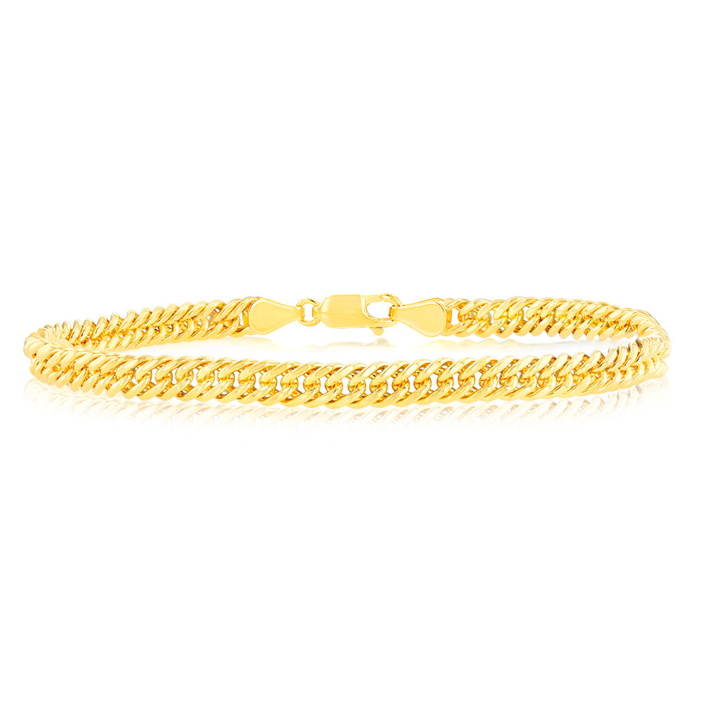 9ct Yellow Gold Silverfilled Double Concave 100Gauge Curb 21cm Bracelet