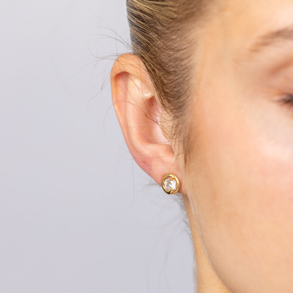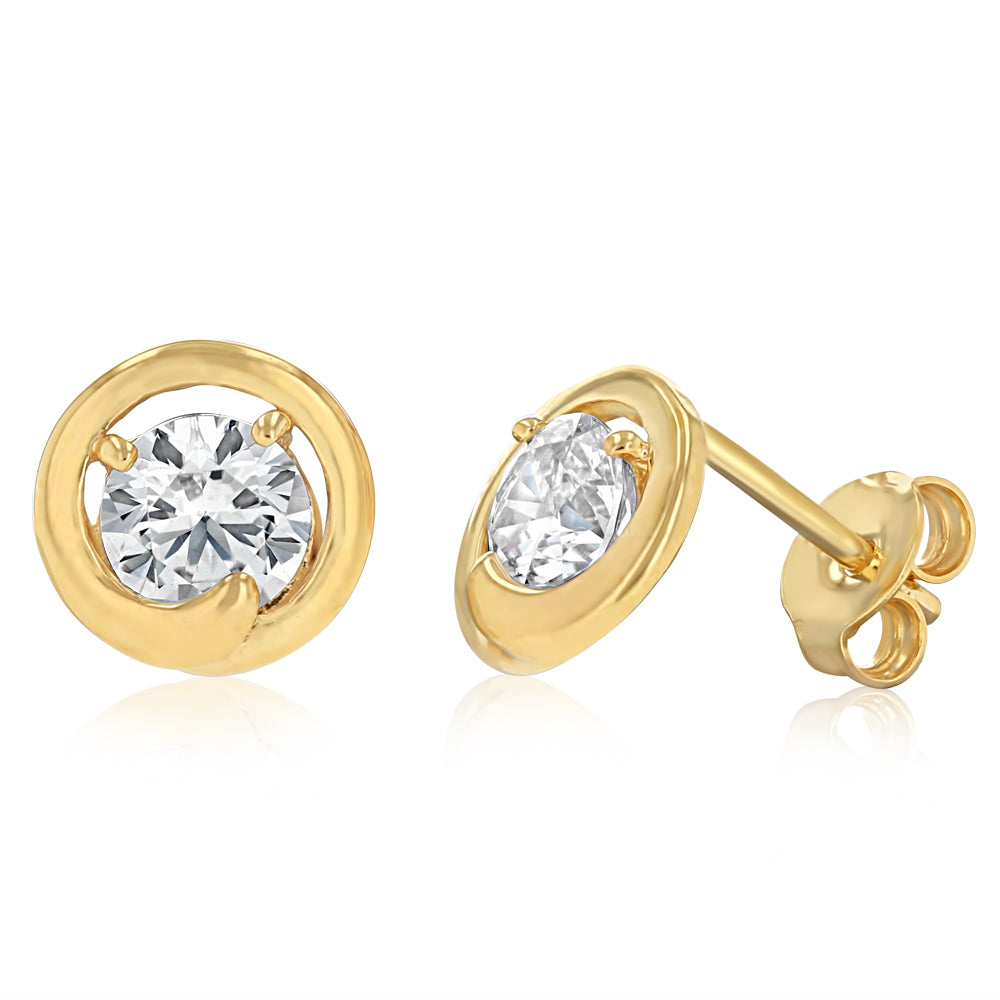9ct Yellow Gold Silverfilled Fancy CZ Stud Earrings